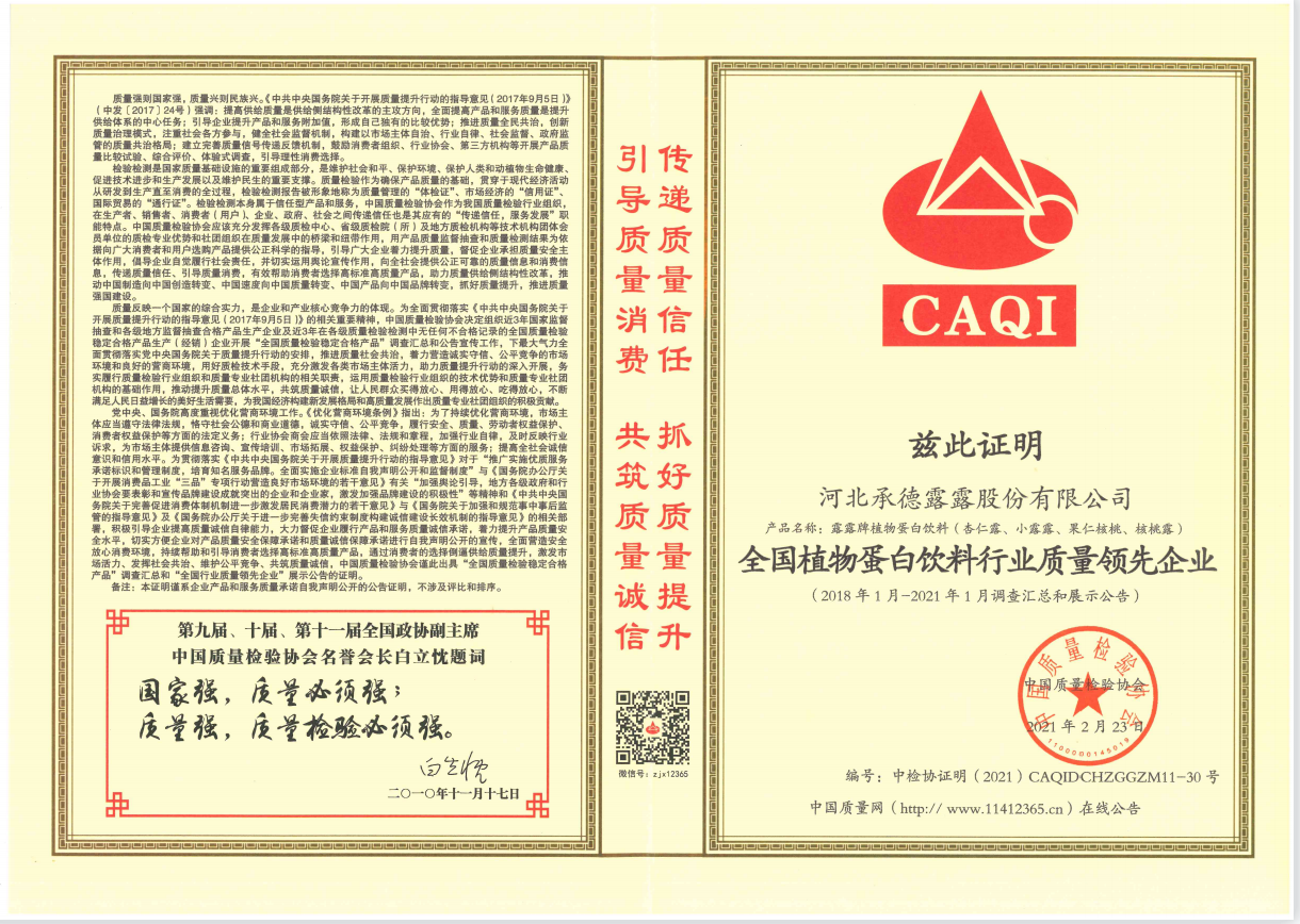 多年來,露露對品質的堅守得到了業界和消費者的一致認同,露露人以匠人精神專注于研究植物營養、健康領域,研發原生態高端植物飲品,致力于為消費者提供可信賴的植物飲品。目前公司主要產品是“露露”杏仁露。它以山杏仁為原料,采用獨特的微米級研磨技術精制而成,0膽固醇、0反式脂肪酸。助力提升每一位消費者的健康狀態和生活質量。